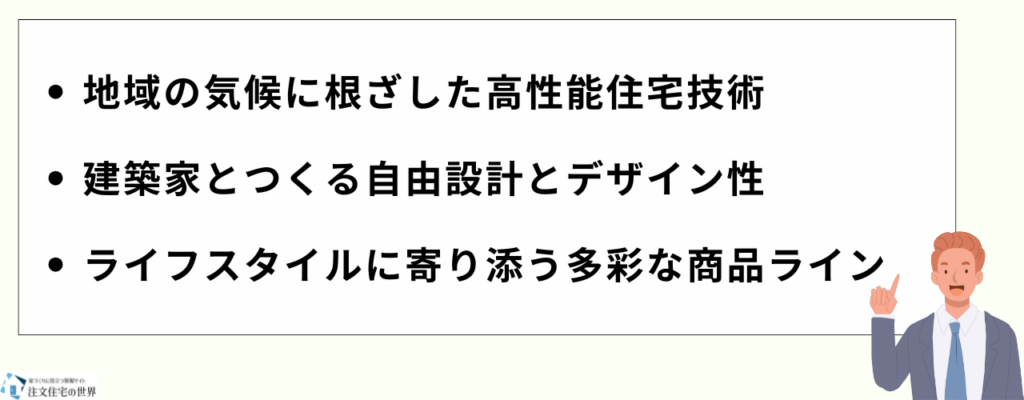 まず、高気密・高断熱構造を標準仕様としている点が大きな特徴です。外断熱や高性能断熱材を採用し、夏は涼しく冬は暖かい住環境を実現。省エネ性や快適性の高さは、長期的な光熱費の削減にもつながります。さらに、耐震・制震構造へのこだわりや、住宅の施工精度を高めるための技術力も評価されています。こうした性能面の強化により、価格以上の安心感と快適性を得られるのが支持の理由の一つです。